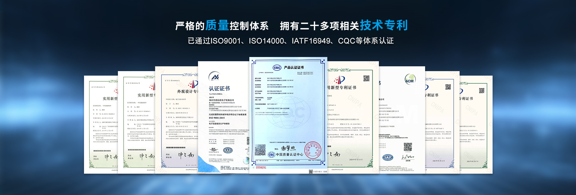 聯達優公司已通過ISO9001、ISO14000、IATF16949體系認證,擁有二十多項相關技術專利,并在不斷擴展更新中,我們可為客戶提供產品防水解決方案從原型設計到批量交付的全鏈路服務,確保各類智能設備在復雜環境下穩定連接與信號傳輸安全可靠。
